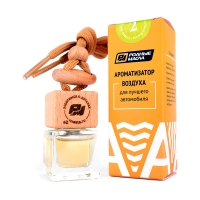 Фирменный ароматизатор Родные масла в удобном стеклянном подвесном флаконе с деревянной крышкой.